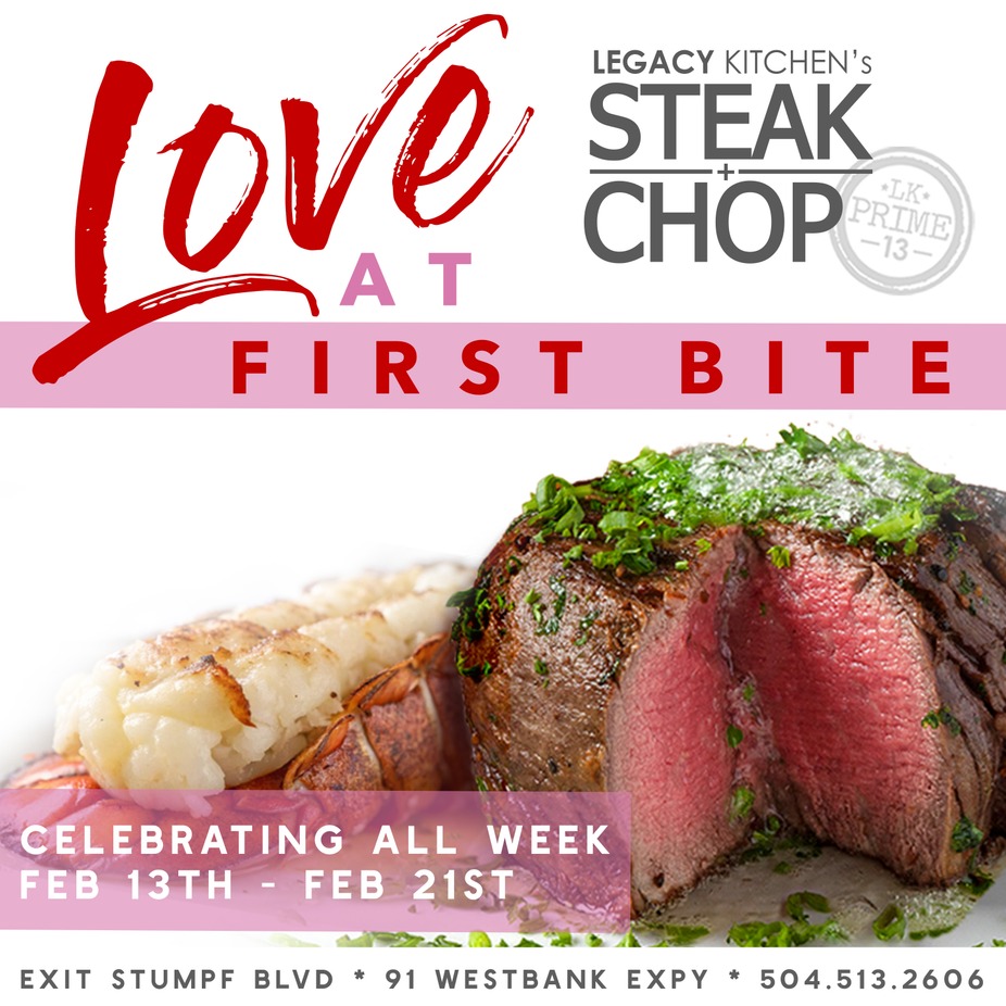 At Legacy Kitchen’s Steak + Chop, we are extending the romance so you can celebrate when it works for you. Whether you want to beat the crowds or celebrate after the floats pass, we are running our special Valentine’s Wine & Dine Menu all week long, from Feb 13th through Feb 21st.
